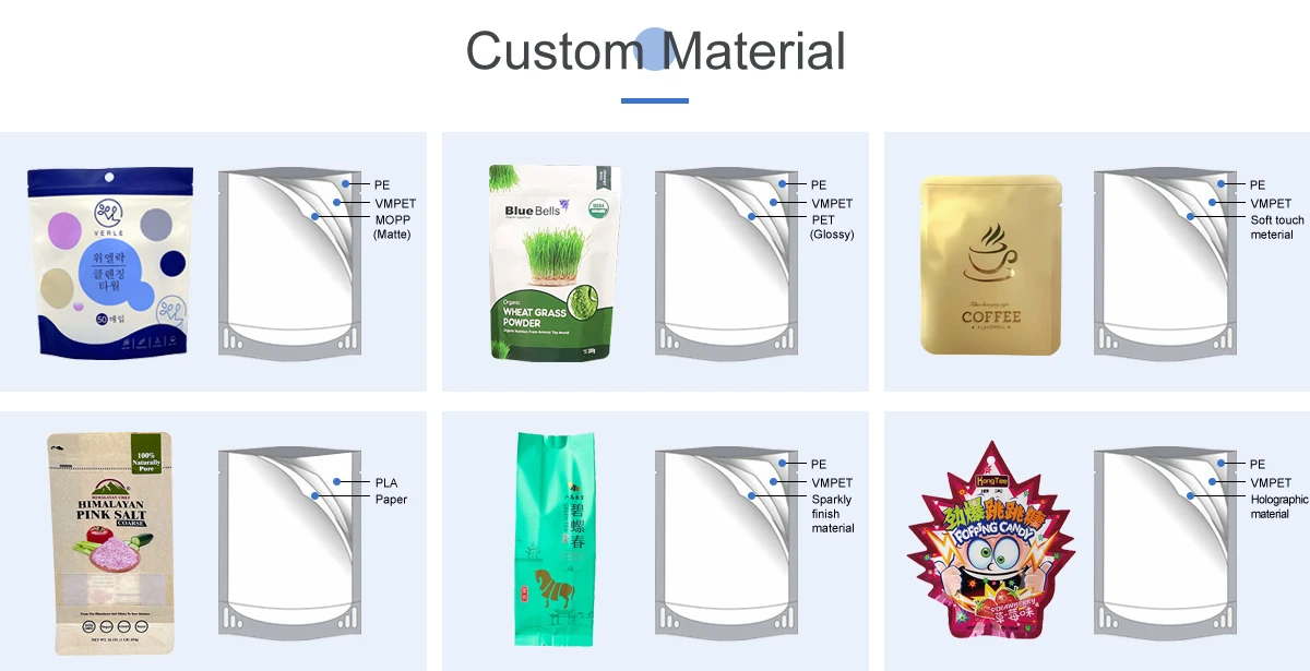Pochette debout à fermeture éclair à huit côtés pour collations grains de café croustilles gelée de sucre aliments pour animaux de compagnie emballage alimentaire pour bébés sac d'emballage de haricots